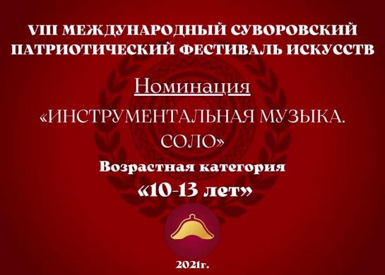 Номинация "Инструментальная музыка. Соло" Возрастная категория: 10-13 лет by Суворовский патриотический фестиваль искусств Videos 1:29 4:12 1:18 4:17 2:39 0:15