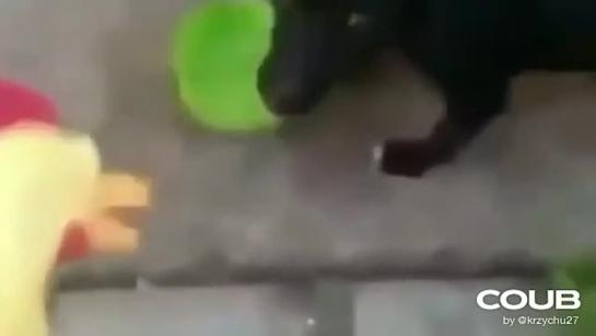 Rubber chicken and dog