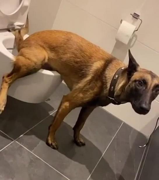 Бельгийская Овчарка Писает в Унитаз