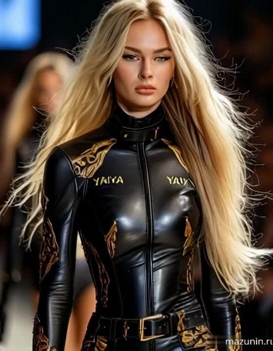 Yaiva fashion / Woman in a black leather suit.