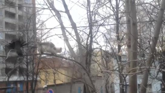 Ворона затроллила кота