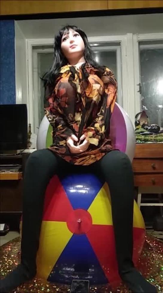 Deflating big beach ball and Alice doll