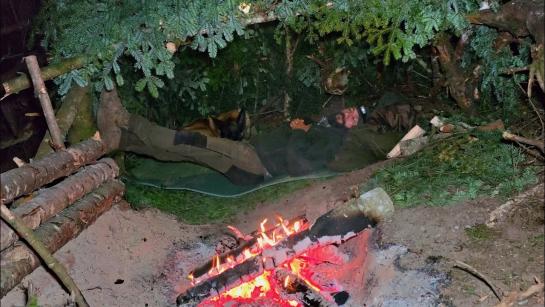 Mountain Survival with My Dog | Primitive Shelter and Campfire Night